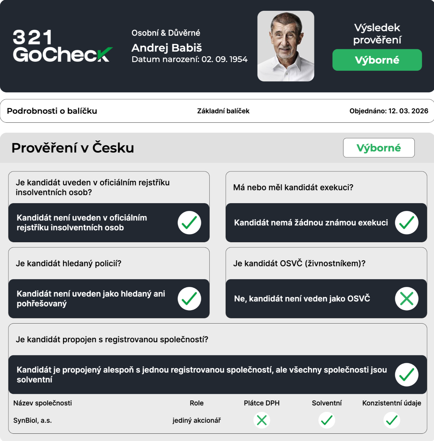Okamžitě obdržíte detailní report s výsledky prověření